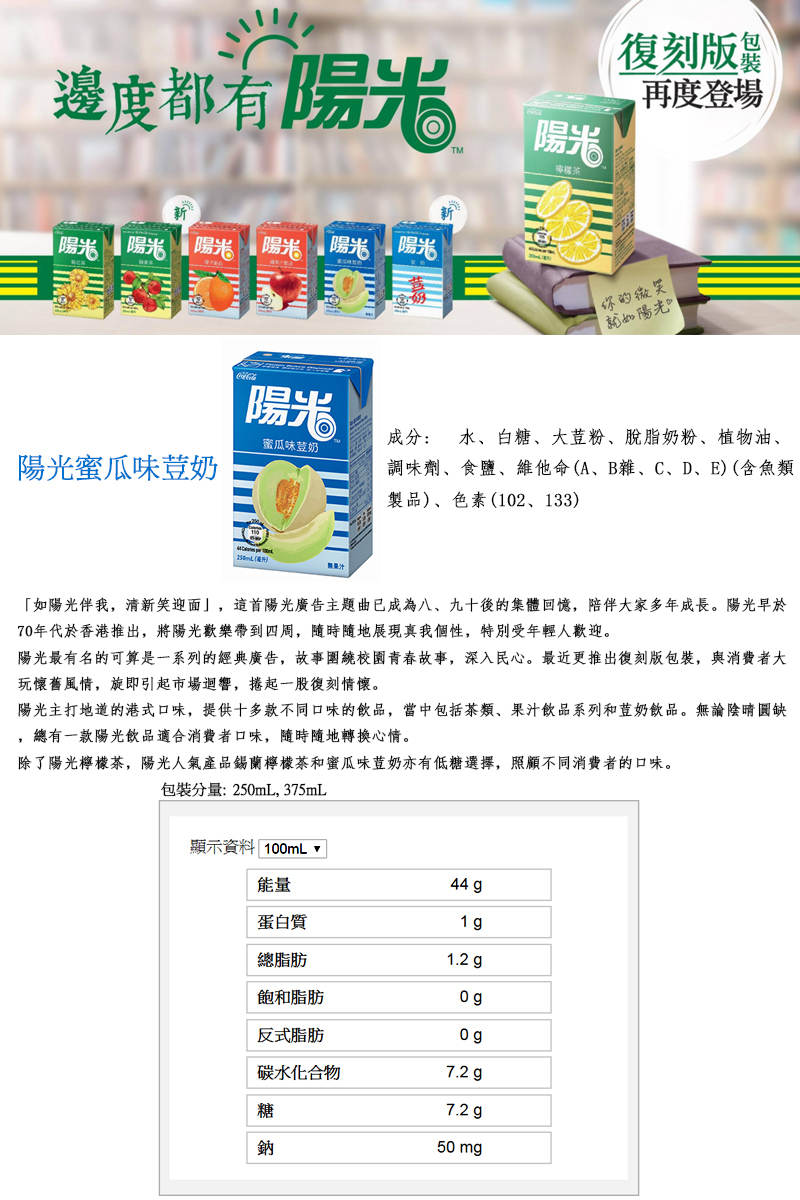 陽光蜜瓜豆奶 250ml